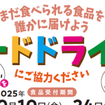 フードドライブに御協力ください 2025年10月10 – 24日 カテゴリ: その他 お家に食べきれない食品が眠っていませんか? ☞ 『フードドライブ活動』(食品の寄付)にご協力ください。 ★ 「フードドライブ」という活動をご存じですか? フードドライブは、家庭で余っている食べ物を学校や職場…