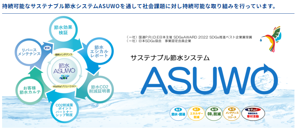 当社のSDGs活動・当社が取り扱っている節水装置を全事務所内に設置。