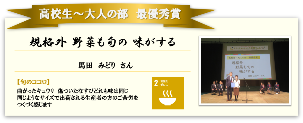 そして、応募総数493句の中から、最優秀賞を2作品、協賛企業賞を6作品決定しました。