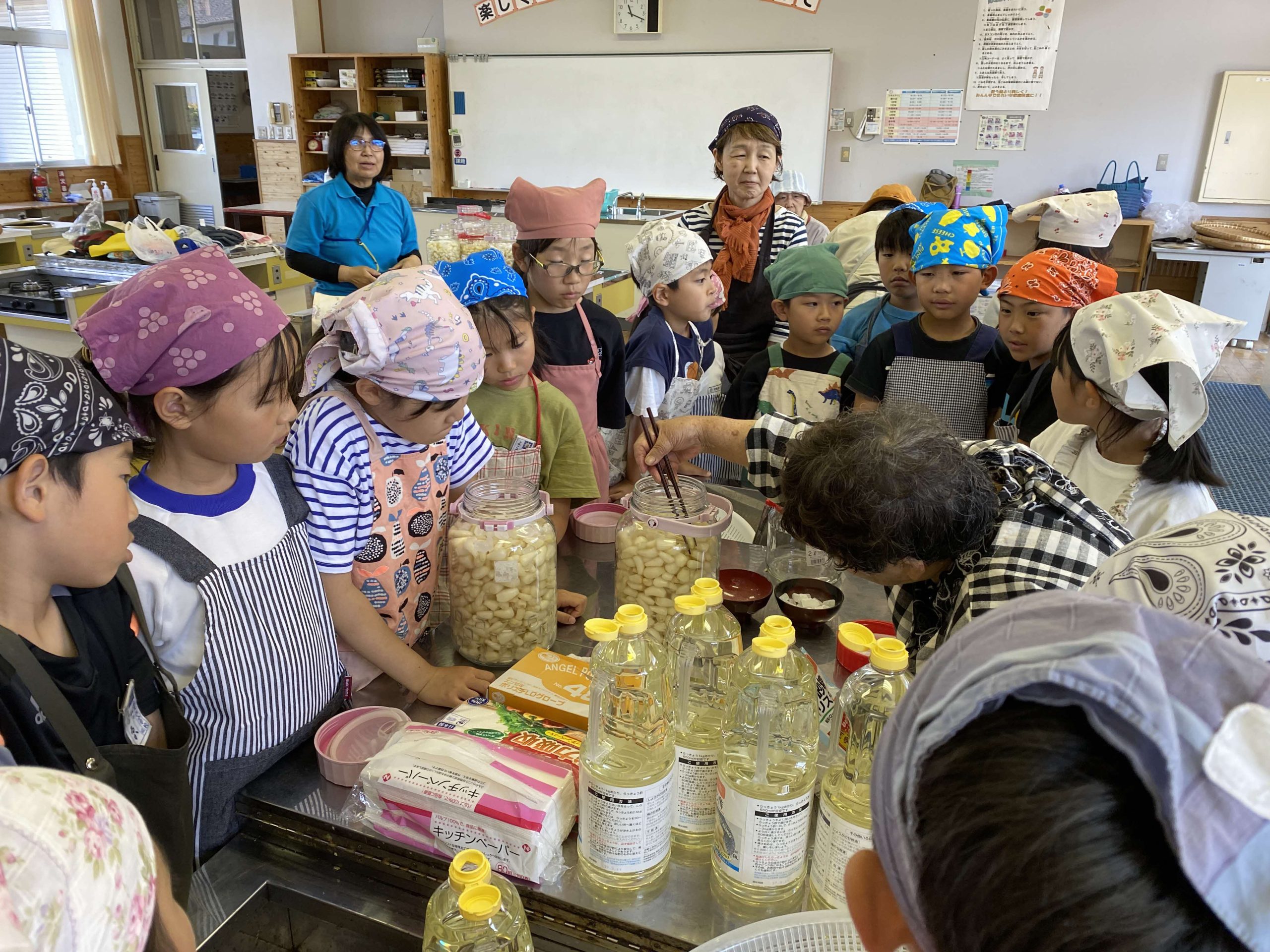 学校応援団の方々と協力し、休耕地でラッキョウの植え付けから収穫、酢漬けまでの一連の作業を体験しました。土壌や気候に応じた栽培の工夫を学び、収穫や加工の過程を実感しました。地域の自然環境と農業がつながっていることを理解し、持続可能な生産の意義を学びました。
